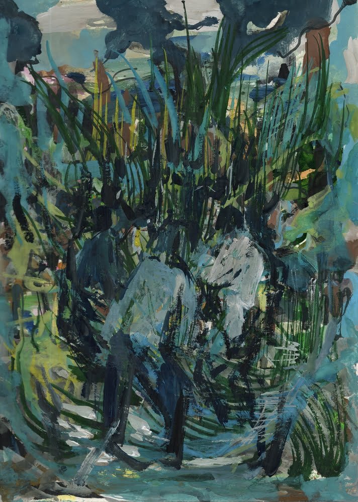 000344 watercolor, oil pastel on paper 27x20cm 2019 forest, green, mud, vertical