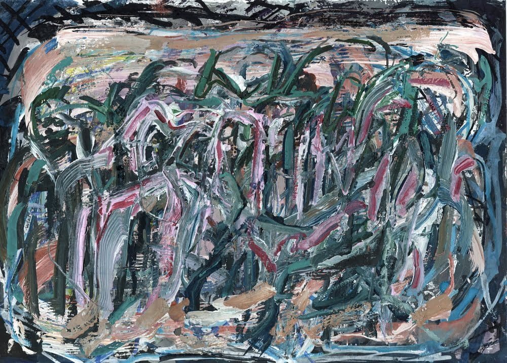 002100 watercolor, oil pastel on paper 20x27cm 2021 night, run