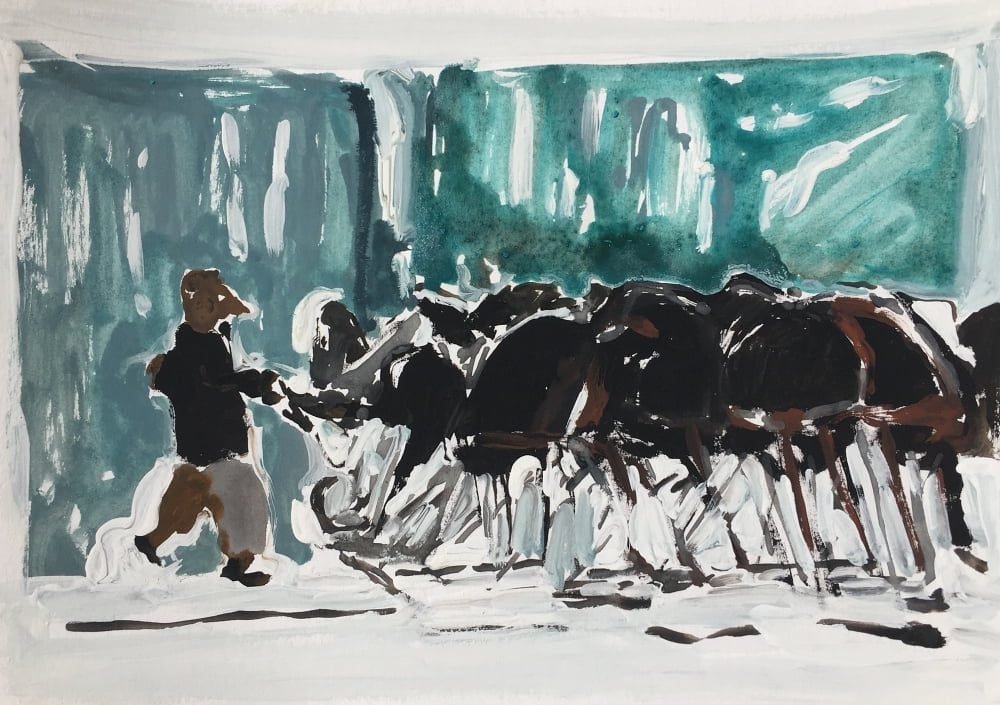 002220 watercolor, ink on paper 20x27cm 2021 dark, hurrah, wind