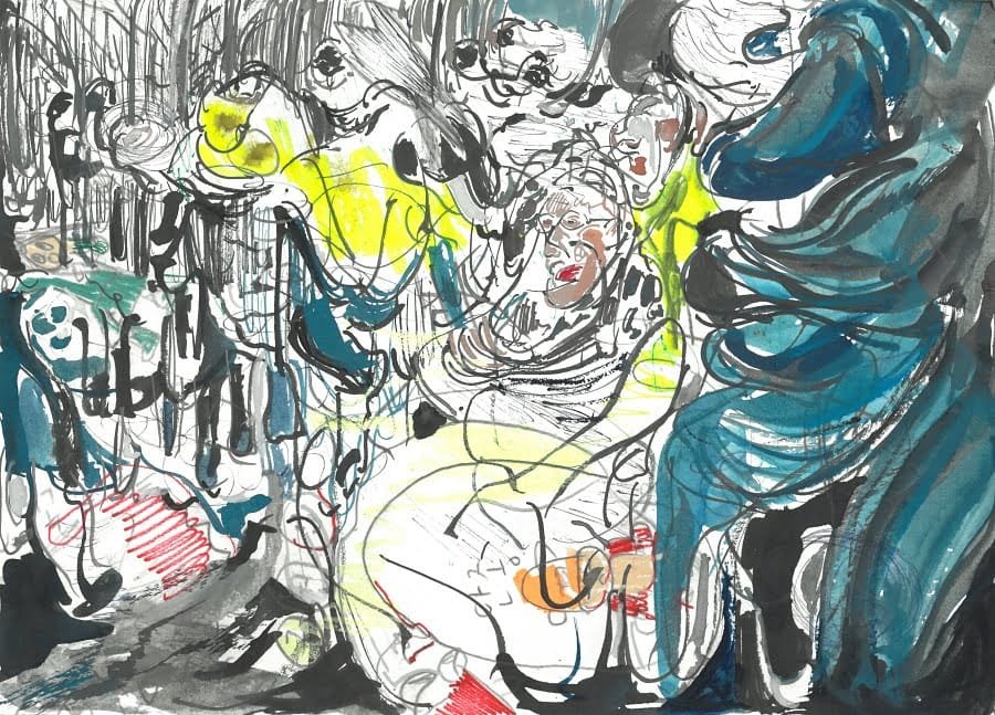 003197 watercolor, ink on paper 20x27cm 2023 hands up